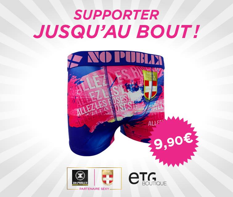 Les Fans de l’ETG FC pourront donc porter les couleurs de leur club favori au plus près. Pour le moment deux produits sont mis en vente. Un boxer homme vendu au prix de 9,90€ et un shorty femme au prix de 8,90€.
