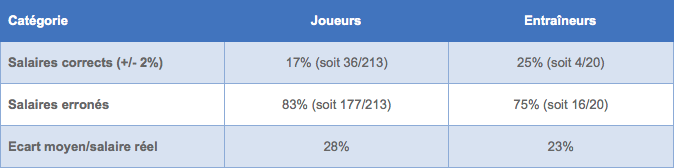 La Ligue dénonce le fait que 83 % des salaires des joueurs publiés par le journal sont erronés, avec un écart moyen de 28%. Même constat chez les entraîneurs où seulement 25% des salaires publiés seraient corrects.