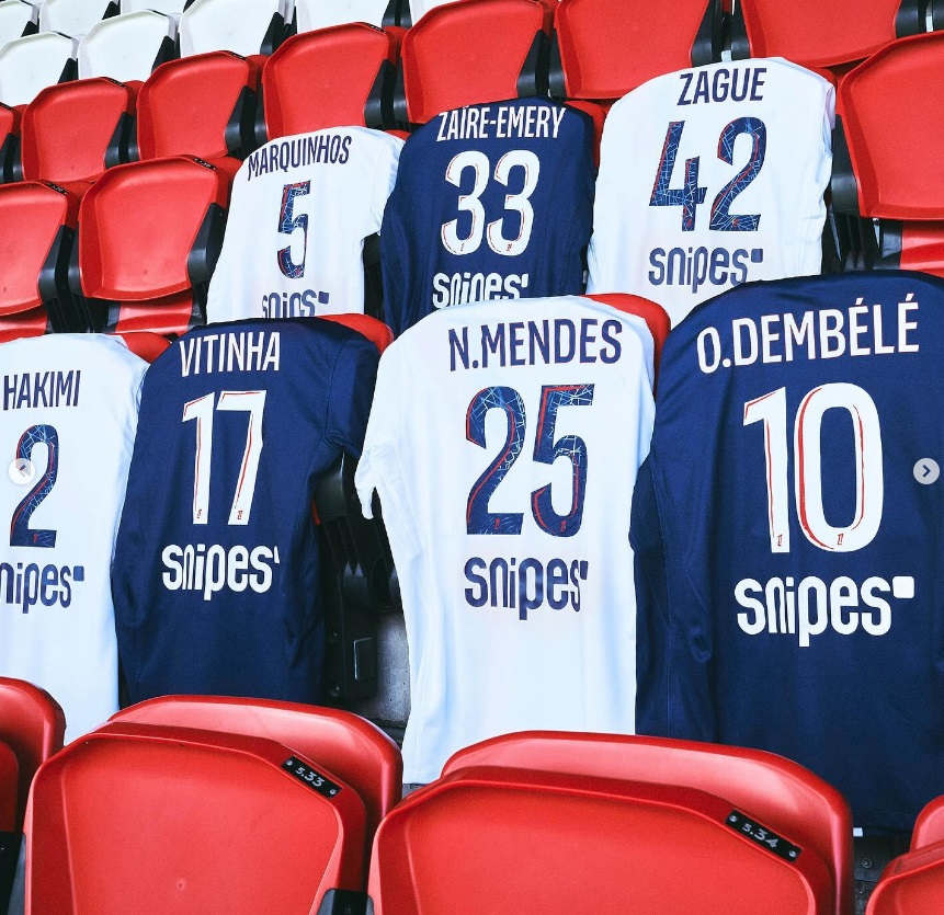 Aujourd’hui, le PSG a officialisé l’arrivée de SNIPES au dos des maillots et succédera ainsi à Ooredoo, dernière marque visible à cet endroit.
