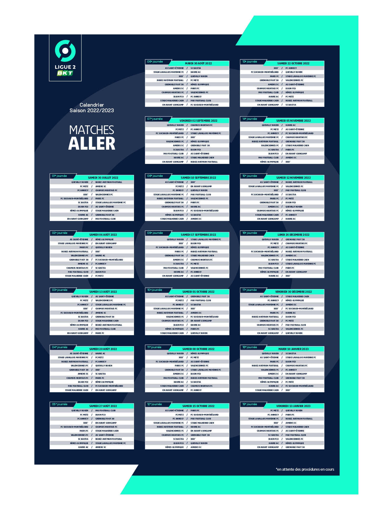 Ce midi, la Ligue de Football Professionnel (LFP) a dévoilé le calendrier des matchs de Ligue 1 Uber Eats et Ligue 2 BKT pour la saison 2022-2023.