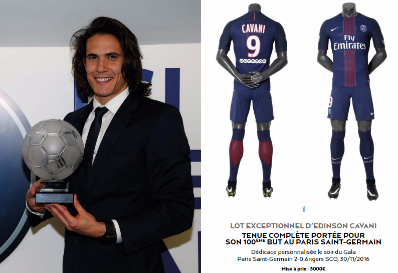La tenue complète d’Edinson Cavani portée pour son 100ème but au PSG, dédicacée par le joueur le soir du Gala.