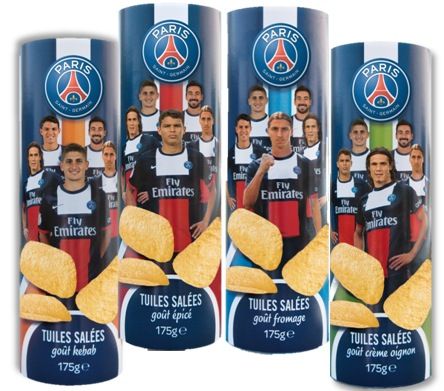 En 2014, la marque PSG se décline en chips et autres biscuits apéritifs dans le cadre d’un partenariat signé avec Europe Snacks.