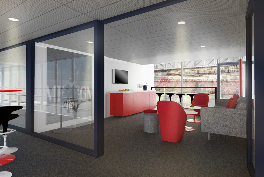 - Les gradins sont rapprochés de la pelouse, la pente de ces gradins redressée pour offrir une parfaite visibilité à tous les spectateurs.