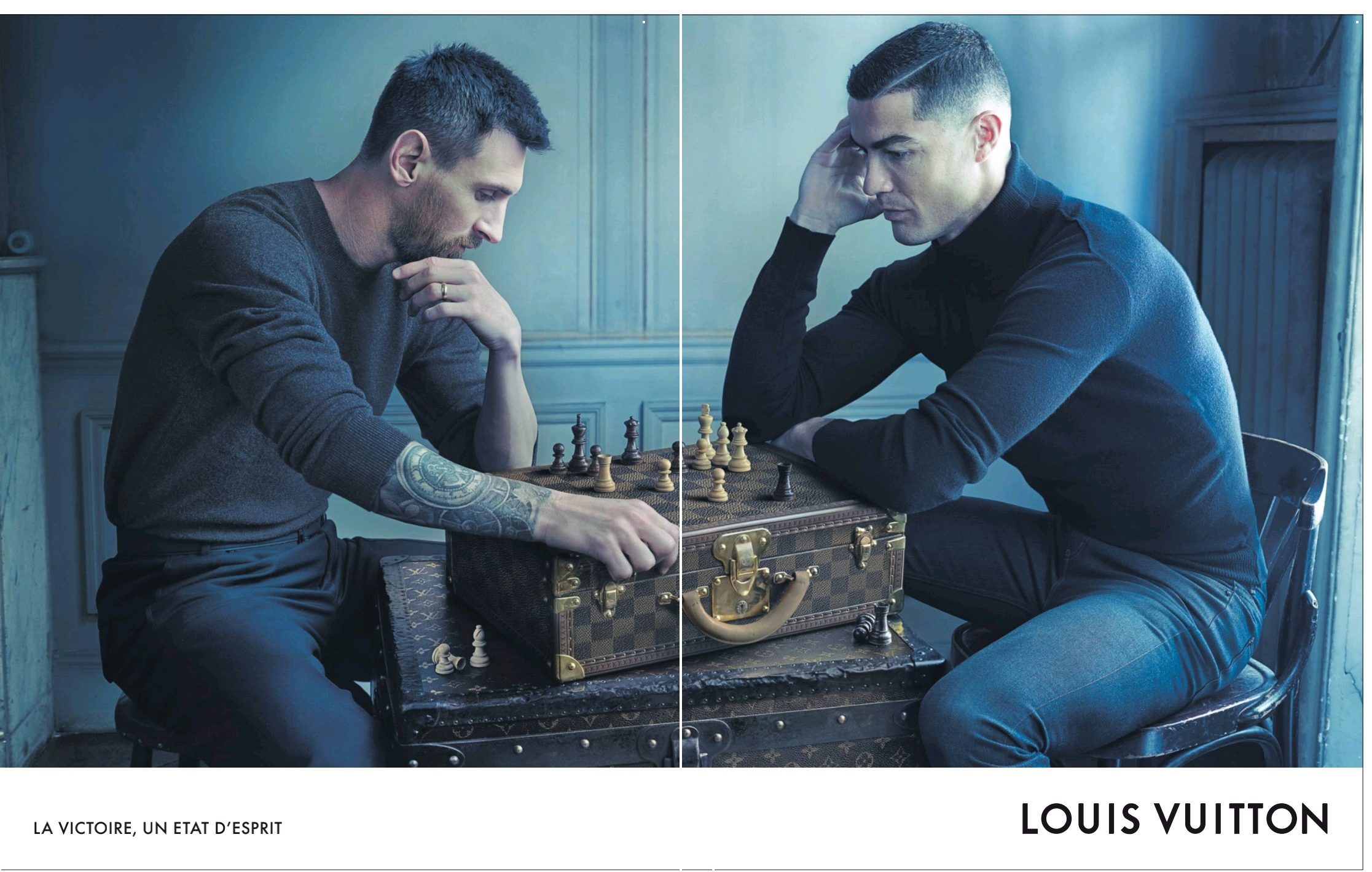 Célébrant deux des footballeurs les plus talentueux, la campagne shootée par la photographe américaine Annie Leibovitz a de quoi marquer les esprits. Justement, Louis Vuitton, en réunissant Lionel Messi et Cristiano autour des célèbres malles et bagages en train de jouer une partie d’échecs, a souhaité rappeler que la victoire est un état d’esprit (Victory is a State of Mind).