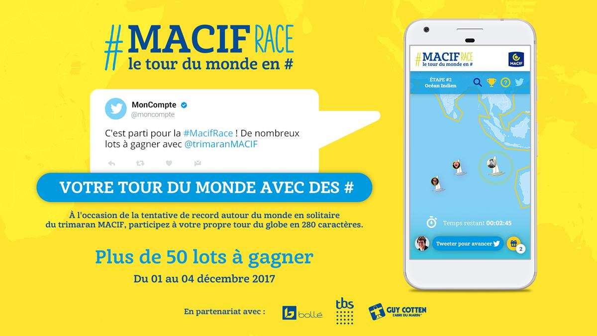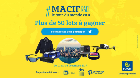 À l’occasion du Tour du Monde en solitaire de François Gabart, son partenaire, la MACIF, lance la deuxième édition de son jeu #MacifRace sur Twitter, trois ans après l’avoir proposé à l’occasion de la Route du Rhum.