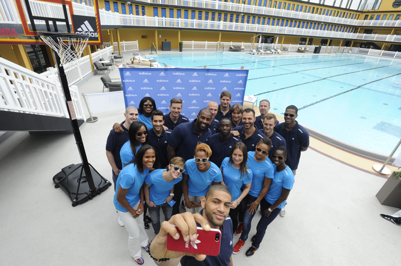 Pour présenter les nouveaux maillots des Equipes de France de la FFBB (à manches et débardeurs), adidas avait réuni certains de ses ambassadeurs basket Nicolas Batum, Nando de Colo, Céline Dumerc, Mickaël Gélabale, Diandra Tchatchouang et Isabelle Yacoubou à Roland-Garros. De nombreux autres athlètes adidas dont Teddy Riner, Benjamin Fall, Teddy Tamgho, Martin Fourcade, Gaëtane Thiney, Jérôme Fernandez… se sont également joints aux basketteurs pour un selfie réalisé en matinée à l’hôtel Molitor ! Notons le geste plutôt déplacé du judoka hier qui a lancé une balle sur le court pendant le match de Gasquet (voir plus bas) alors qu’il était reçu sur la terrasse de France Télévisions…