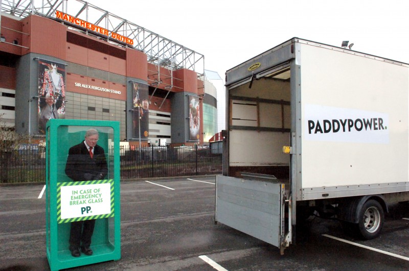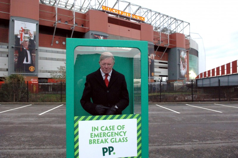 Le bookmaker irlandais Paddy Power, habitué à une communication décalée, a décidé de profiter de la mauvais situation sportive du club de Manchester United, battu ce week-end par Chelsea (3-1) et actuel 7ème de Premier League. En effet, Paddy Power a envoyé un mannequin de Sir Alex Ferguson, l’ancien coach de légende de Red Devils, installé dans une vitrine devant le stade d’Old Trafford. A ne briser qu’en cas d’urgence ! L’actuel coach David Moyes résistera t-il longtemps à la pression grandissante face aux mauvais résultats ?
