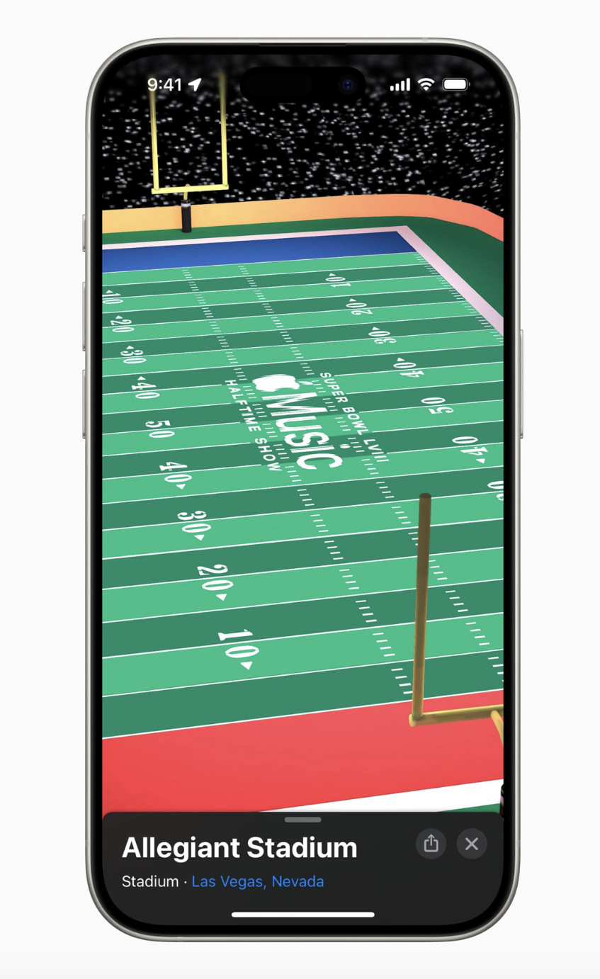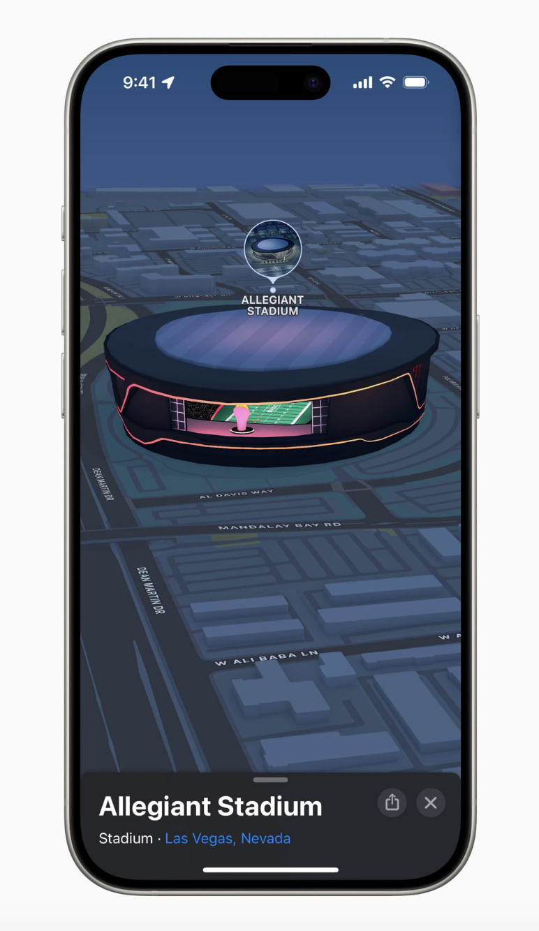 Apple va aussi illuminer l’Allegiant Stadium de Las Vegas avec une animation particulière sur l’application Plans.