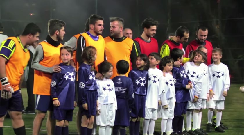En décembre dernier, MasterCard a en effet piégé des joueurs de foot à 5 en Turquie en leur offrant une expérience Ligue des Champions. Alors que les joueurs anonymes terminent leur échauffement, la célèbre musique de la Champions League retentit, les « Player Mascots » entrent sur le terrain et viennent prendre la mains des joueurs pour le protocole d’avant-match façon Champions League ! Une poignée de supporters a également fait le déplacement pour enrichir un peu plus l’expérience vécue par les piégés du jour.