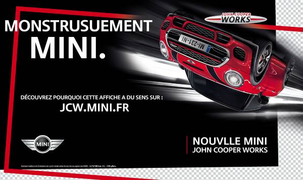Partant de ce concept digital décalé, MINI France s’est pris au jeu et a décidé de le décliner sur tous les supports existants de la campagne, aussi bien on et offline, générant ainsi des annonces presse et un affichage événementiel complètement déstructurés à l’image de l’expérience « MONSTRUEUSEMENT MINI ».