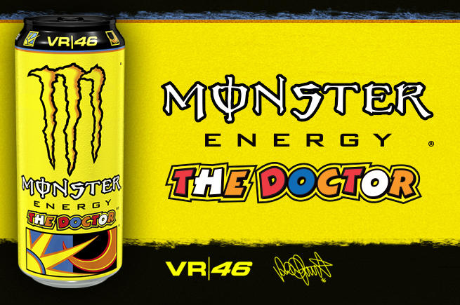 Ambassadeur de Monster Energy depuis de nombreuses années, Valentino Rossi et la marque d’Energy Drink poussent un peu plus loin leurs activations marketing communes en dévoilant une nouvelle boisson – « The Doctor » – à l’effigie du pilote moto italien 6 fois Champion du Monde en MotoGP. Une boisson signature donc concoctée avec l’aide du célèbre numéro 46 himself. La Monster « The Doctor » – Monster la plus rapide – propose un goût léger et rafraîchissant d’agrumes. Une nouvelle référence qui est proposée en édition limitée et qui vient s’ajouter aux différentes saveurs déjà proposées par Monster Energy (Classic, Rehab, Ripper, Khaos, Assault…). #FastestMonster !