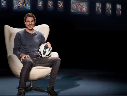 Dans la publicité ci-dessous, le majorquin est ainsi mis en scène comme un athlète hors norme qui a révolutionné son sport et le sport en général de par par son look, sa force, sa rapidité et son intensité. Il y a un avant et un après Nadal où tout va plus vite. Un spot qui met en scène également les deux pilotes MotoGP Valentino Rossi et Jorge Lorenzo.
