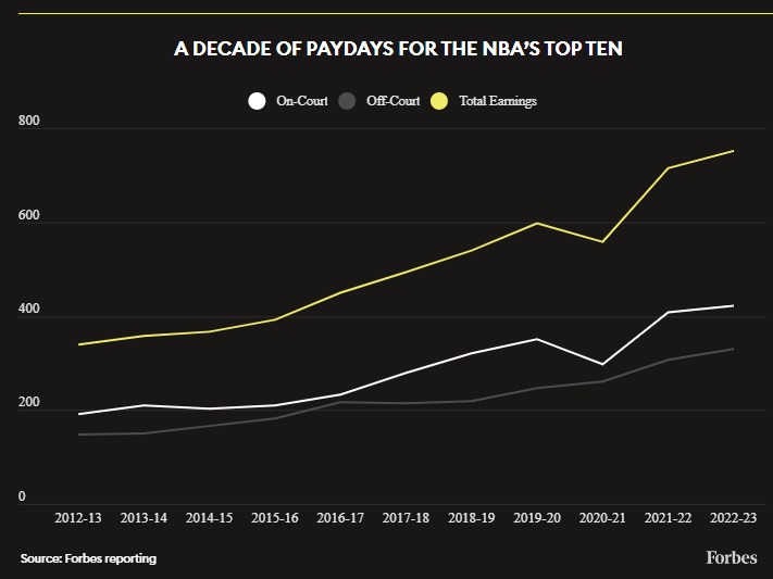 Les revenus des joueurs NBA (Forbes 2022-2023)