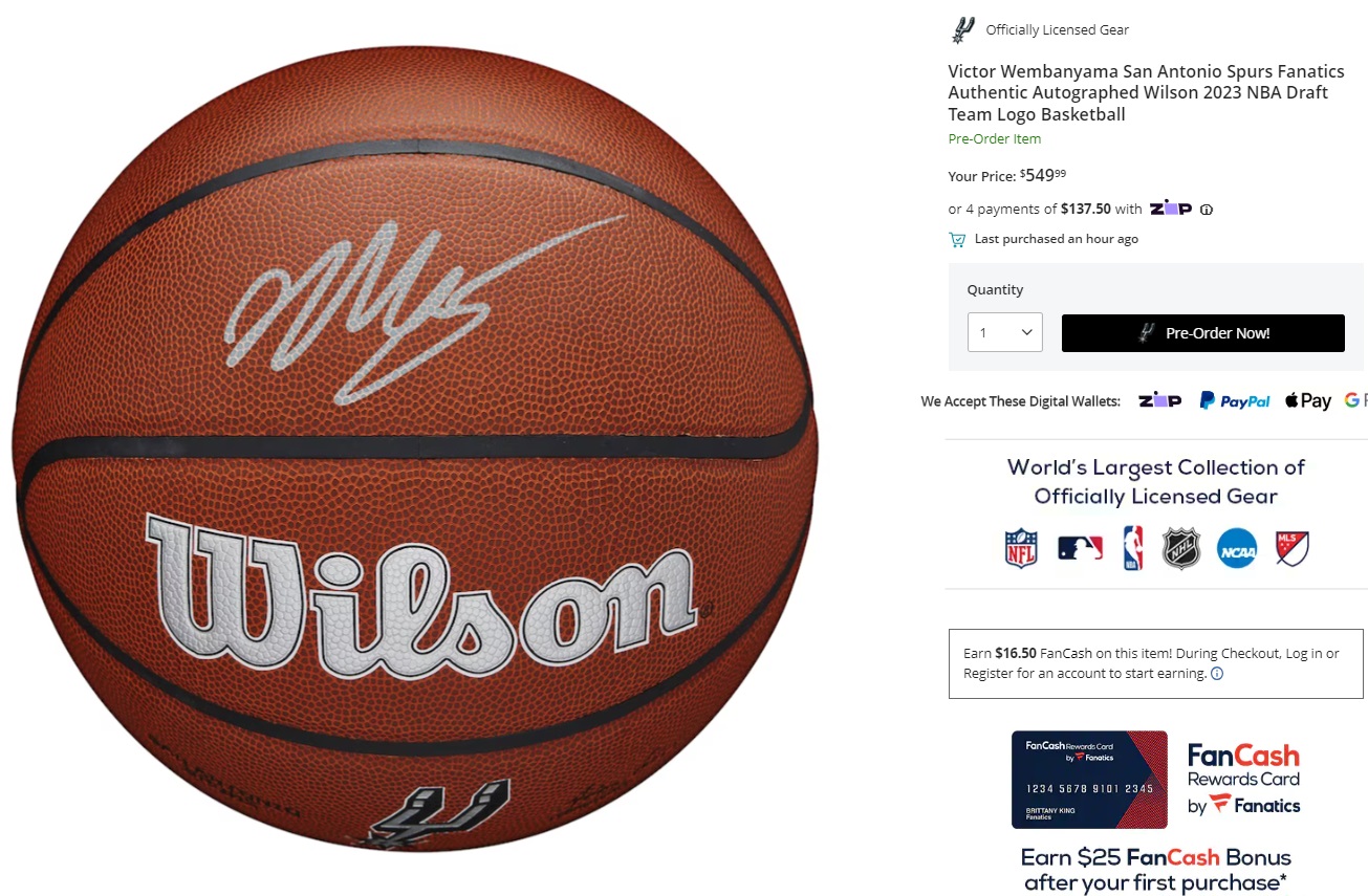 Sur son site e-commerce, Fanatics propose un ballon de basket Wilson dédicacé par Wembanyama en vente au prix de 550 dollars. Ces dernières années, la société américaine est devenue un acteur majeur du sport business, valorisée à 31 milliards de dollars à la fin de l’année 2022.