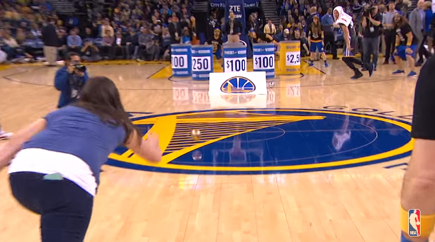 Steph Curry s’est invité il y a quelques jours dans une animation organisée durant les temps morts. Le double MVP NBA a impacté directement le résultat pour faire remporter 5 000$ à une fan des Golden States Warriors.