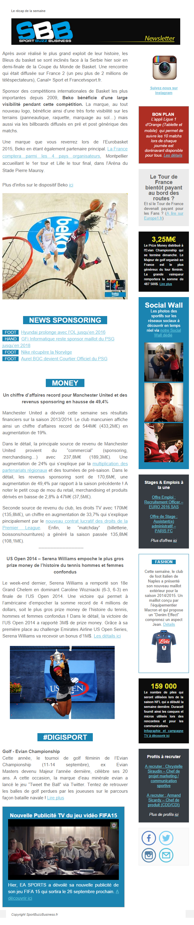 Une fois par semaine dans votre boite email, la newsletter SportBuzzBusiness.fr vous offre un condensé de l’actualité du marketing sportif, du sponsoring et du sport business.