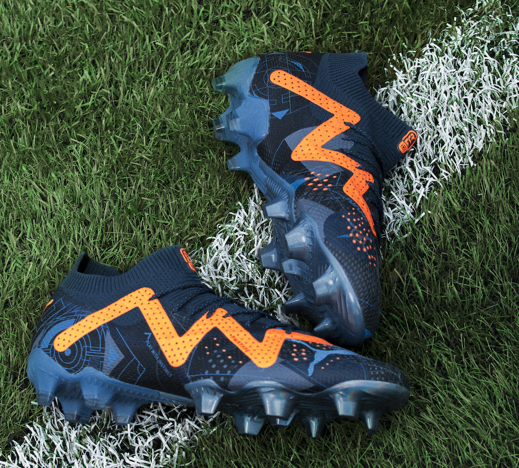 Côté Puma et Neymar, c’est un tout nouveau coloris Future Ultimate FG/AG DNA. La chaussure est officiellement sortie il y a quelques jours et en vente au prix de 260 euros sur le site e-commerce spécialisé Unisport. La paire est limitée à 1 500 exemplaires. Avec une base bleue, deux sortes de vagues oranges viennent entourer les lacets. Quelques détails d’un bleu plus claire, mais aussi orange sont également présent sur l’empeigne pour apporter un côté plus flashy à la paire. La plaque de crampons à l’air différente de la dernière édition, mais là encore aucun détail divulguer par Puma. Enfin, sur le talon, il y a un logo de la marque en orange, histoire de ne pas oublier de quelle marque on parle.