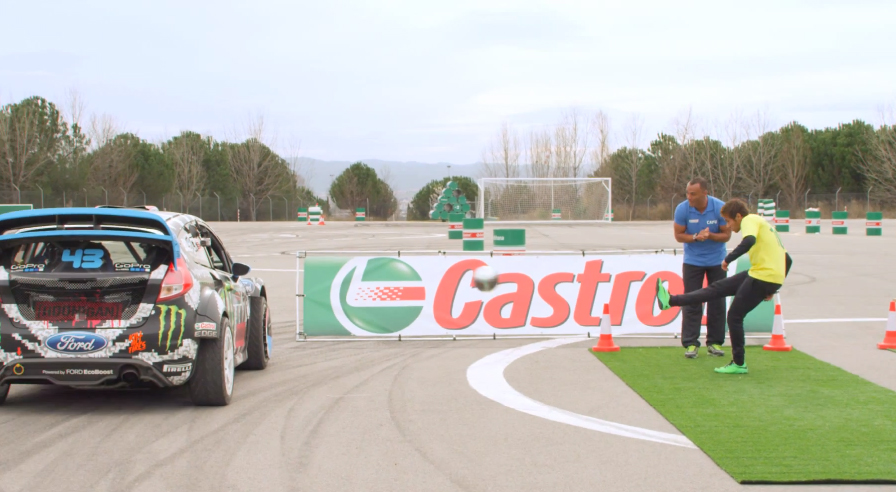 Le 22 avril prochain, la marque de lubrifiants Castrol, sponsor officiel de la Coupe du Monde 2014 au Brésil, dévoilera sa nouvelle campagne publicitaire qui mettra en scène Neymar Jr et le pilote Ken Block, célèbre notamment grâce à ses Gymkhana ! Les deux hommes, ambassadeurs de Castrol, seront ainsi les vedettes d’une série de vidéos « Castrol Footkhana ». Neymar fera ainsi équipe avec une flopée de freestylers dont Séan Garnier et défieront Ken Block et sa Ford lors de nombreux défis ! #NeymarJRvBlock