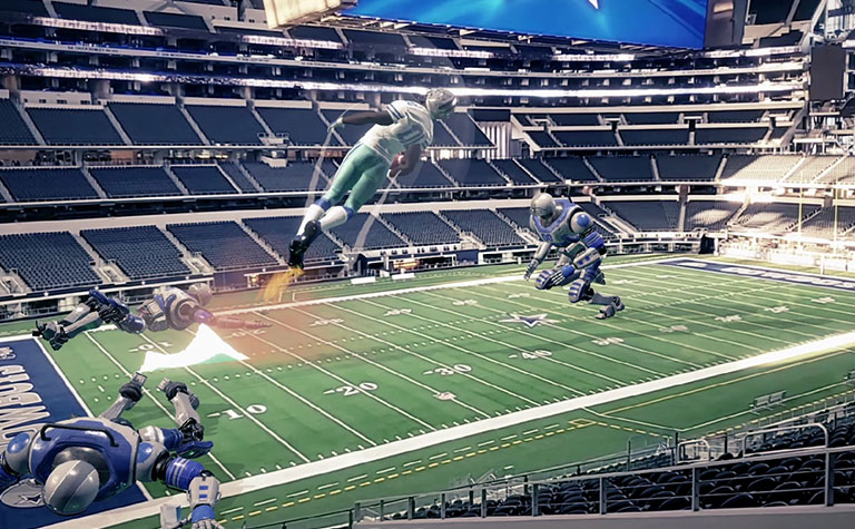 Les jours de match, au club level, il est également possible d’observer les performances et statistiques de l’équipe avec un contenu en réalité augmentée et l’activation « Live Game Data & Time Tackle ». En plus, AT&T a également conçu un jeu avec des robots virtuels.