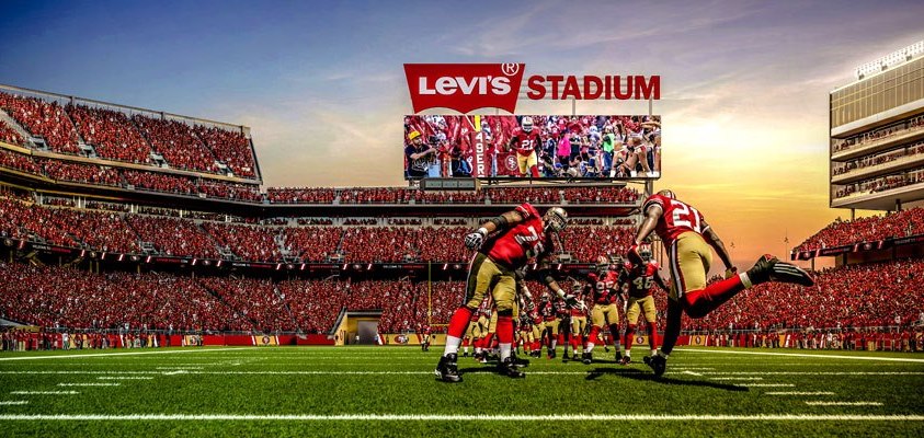 Levi Strauss & CO a signé hier un contrat de Naming avec le Santa Clara Stadium et la franchise NFL des San Francisco 49ers. Le contrat de Naming a été signé pour un durée de 20 ans pour une valeur de 220 millions de dollars. Levi’s devient donc Sponsor Officiel des 49ers et bénéficiera évidemment d’une visibilité maximale à l’intérieur mais aussi à l’extérieur du futur Levi’s Stadium qui ouvrira ses portes en 2014 ! Un rapprochement « logique » selon Ed Lee, Maire de San Francisco, entre deux marques fortes de la baie de SF. La marque de jeans Levi’s rejoint ainsi Sony, qui s’est associé il y a quelques mois aux 49ers dans l’objectif de fournir aux fans une expérience au stade unique !