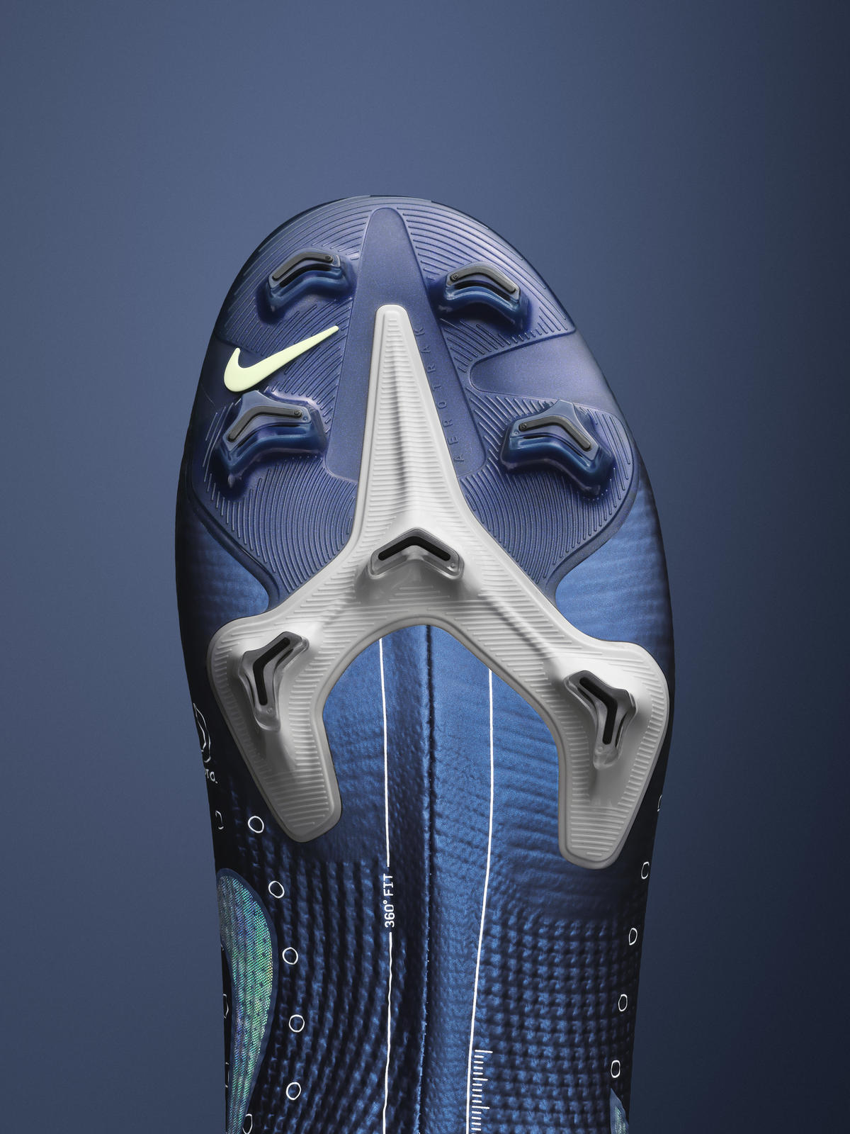 Bleu nuit, la chaussure propose une finition métallisée et scintillante. Un modèle relevé du numéro « 001 », de la mention « MDS » ou encore de la vitesse « 44.7 km/h », « vitesse rêvée par n’importe quel footballeur » précise la marque au swoosh dans son storytelling.