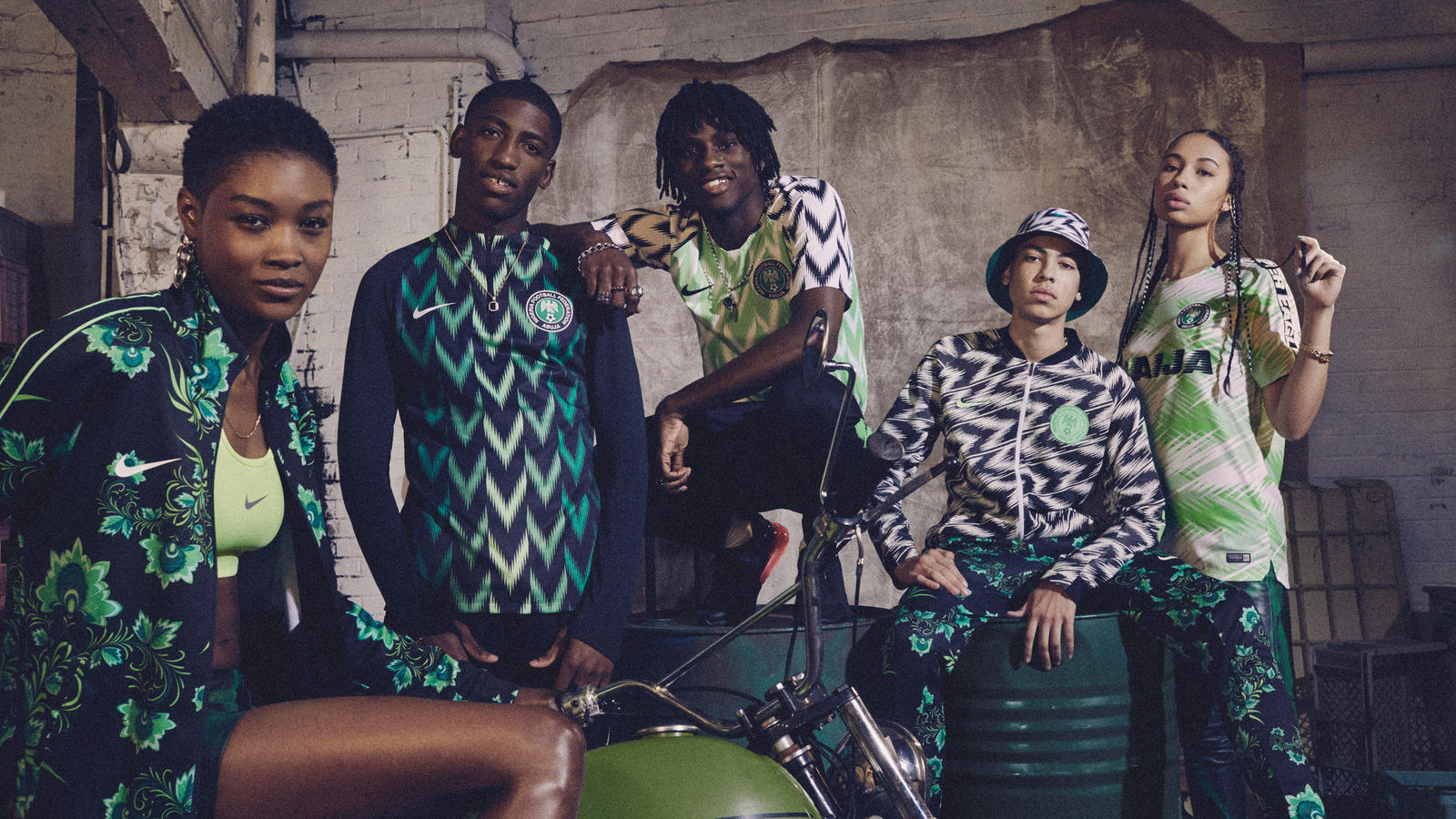 Hommage aux anciens pour le maillot domicile. Ce dernier est un clin d’oeil subtil à la tenue portée par le Nigeria en 1994, lors de la première participation des « Super Eagles » à un mondial de football. Cette tunique domicile est constituée d’une manche noire et blanche inspirée des ailes d’aigle et d’un torse vert. Le maillot extérieur est plus sobre. Prime au vert foncé avec une pointe de vert clair.