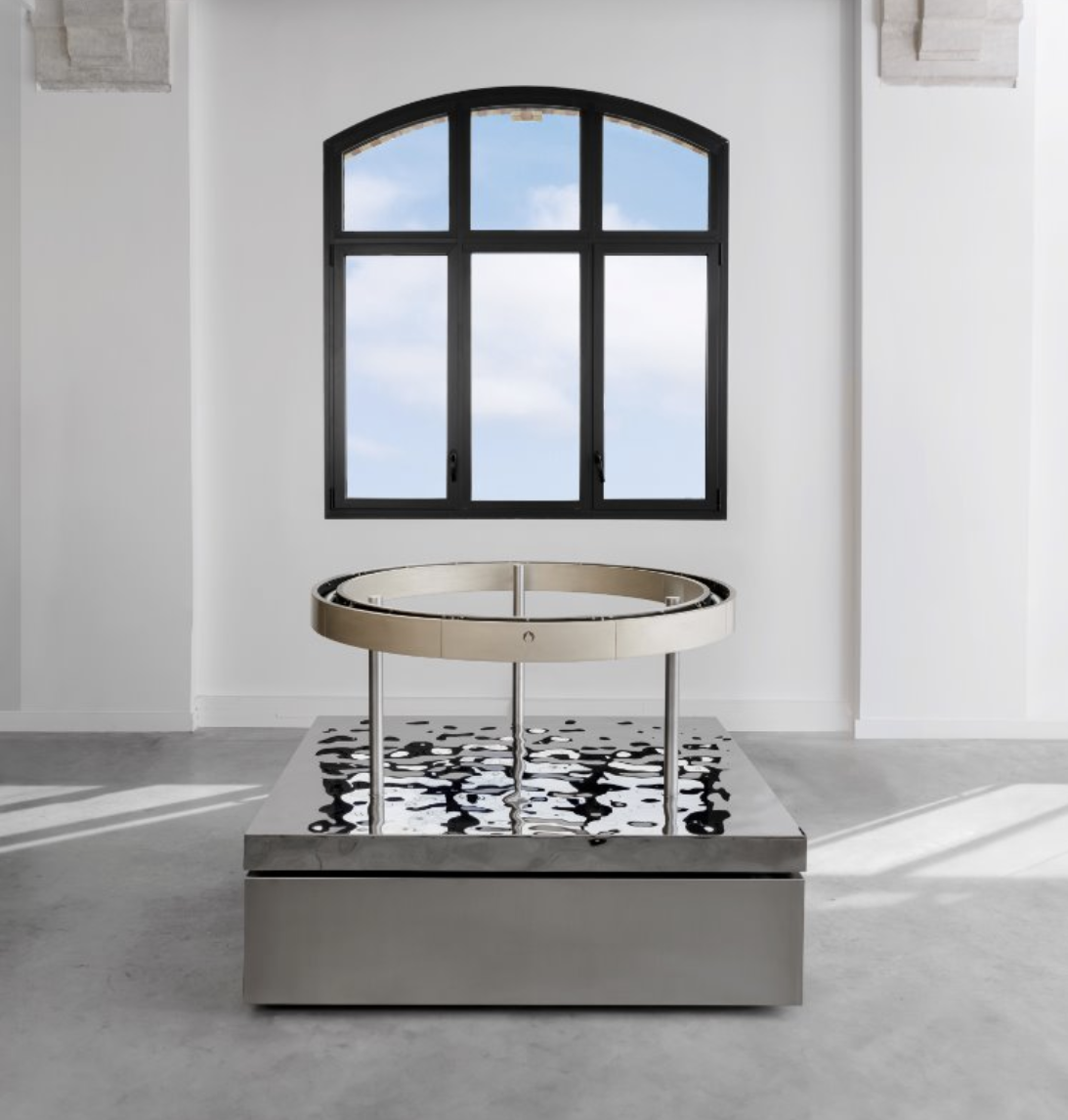 En présence de certaines statues géantes de Nike présentes au Palais Brongniart en avril dernier.