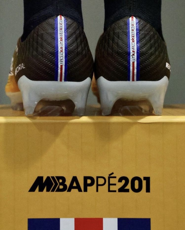 Pour l’honorer, Nike a décidé de reprendre le design de la paire avec laquelle il a marqué son premier but avec le Paris Saint-Germain. C’était le 8 septembre 2017 à Metz et à l’époque, il portait la Nike Mercurial Vapor 11 « Lock in let Loose ». La paire présentait un mixte de noir et d’orange avec quelques détails vert. La bordure du swoosh et la plaque de crampons étaient quant à elle toute blanche.