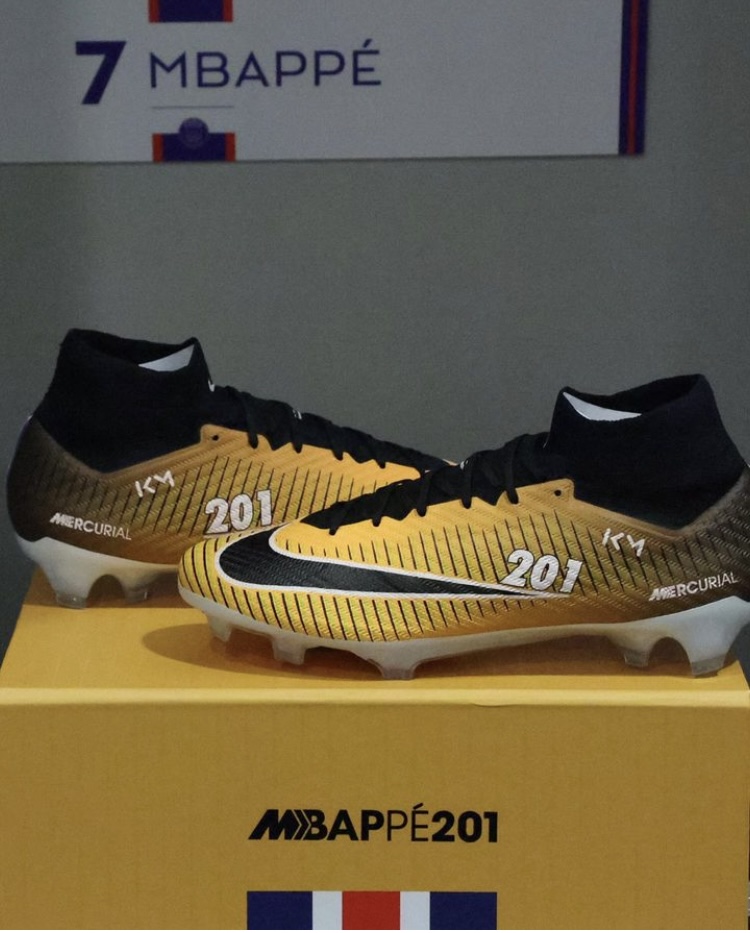 Des crampons spéciaux pour un record spécial. Nike en a désormais l’habitude, à chaque accomplissement atteint par l’un de ses joueurs stars, la marque à la virgule créé des chaussures uniques. Kylian Mbappé n’étant certainement pas une exception, le génie de Bondy a reçu une paire de Mercurial en l’honneur de son record de buts, 201, au PSG.