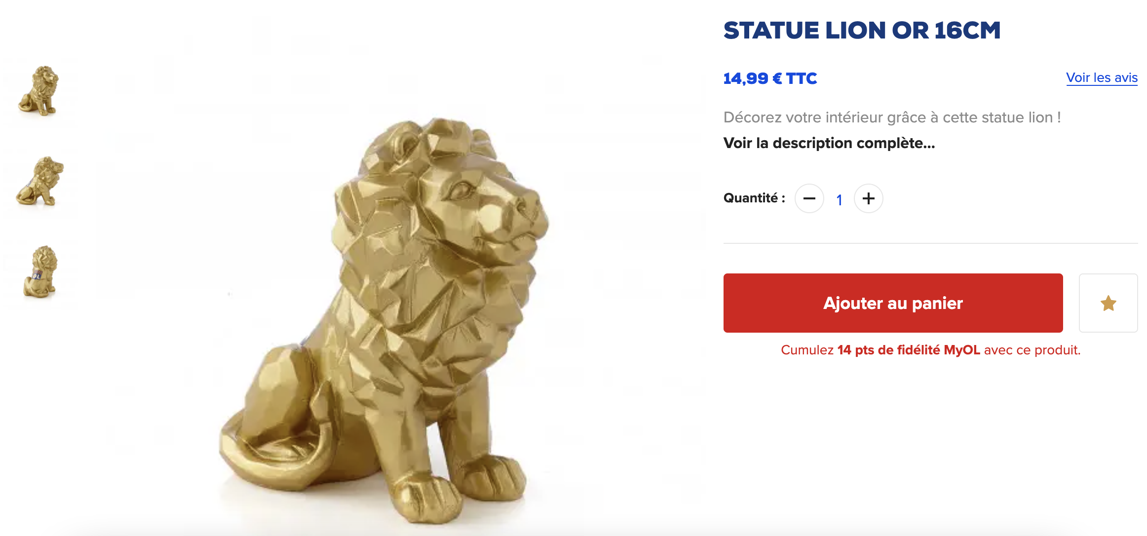 Et si vous vous laissiez tenter par une jolie statue lion de l’Olympique lyonnais. Sans blaguer, la babiole est plutôt stylée et elle ne vous coûtera que 14,99 euros. Honnête. Maison du Monde se ferait un plaisir de vous vendre ce petit lion en origami pour le double, si ce n’est pas le triple.