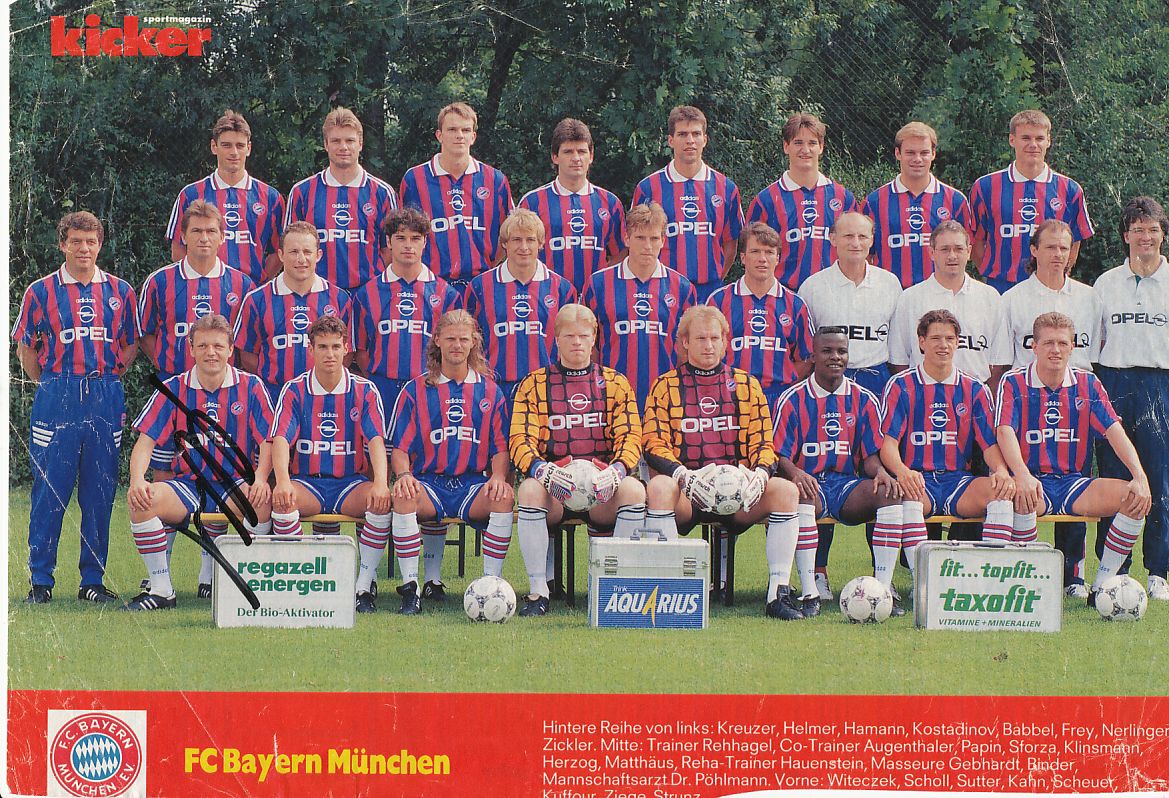Ce nouveau maillot domicile 14/15 du Bayern Munich devrait plaire aux nostalgiques du club puisque le design ressemble de près à celui porté lors de la saison 95/96. Une saison couronnée par une victoire en Coupe de l’UEFA par la bande à Lothar Matthäus et Jürgen Klinsmann face à Bordeaux (2-0; 1-3).