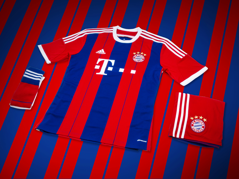 Le Bayern Munich et adidas ont dévoilé officiellement aujourd’hui le nouveau maillot domicile que porteront les champions d’Allemagne lors de la prochaine saison 2014/2015. Un maillot rayé rouge et bleu à col rond blanc qui sera porté pour la première fois demain à l’occasion de la réception de Stuttgart. Un match qui marquera les festivités du titre de champion d’Allemagne du Bayern Munich.