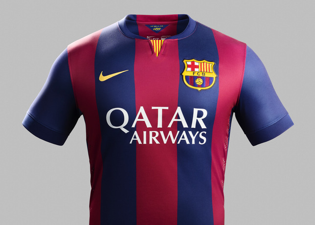 Côté look, le nouveau home Kit 14/15 Nike du FC Barcelone propose un retour aux couleurs plus classiques du club avec un rouge et un bleu plus sombre et des rayures plus larges. Le drapeau catalan jaune et rouge est présent sur le devant du col.