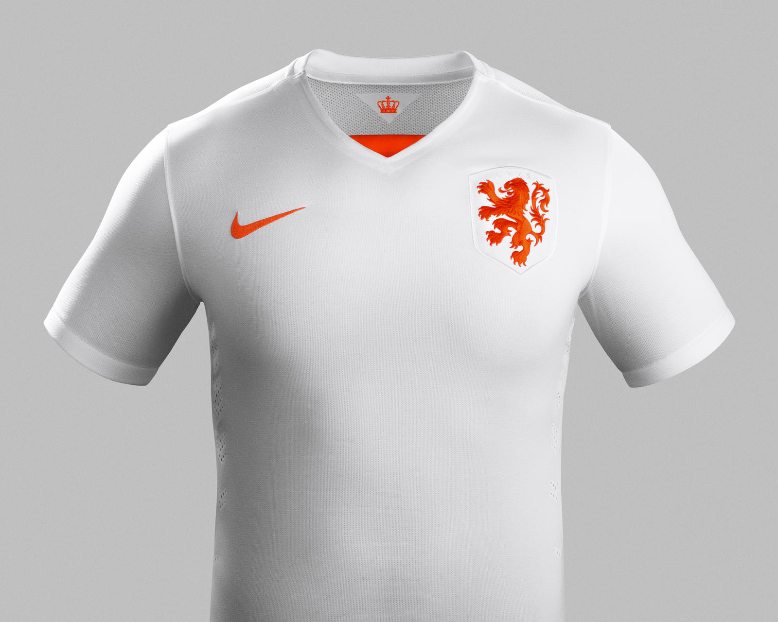 Le nouveau maillot away des Pays-Bas est lui à dominante de blanc avec le swoosh et le logo de la fédération en orange. Une couleur que l’on retrouve également sur le flanc des maillots. Le short sera lui orange avec des bandes horizontales en dégradé de blanc-orange.