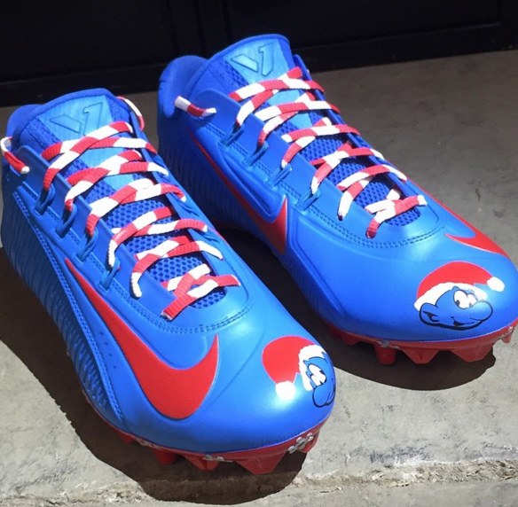 Pour la rencontre contre Carolina, le joueur, qui avait réalisé le « catch of the year » la saison dernière, avait opté pour un modèle Schtroumpf (Smurf) bleu.