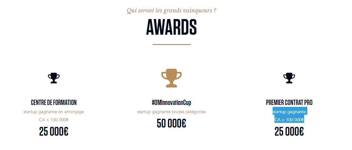 Jusqu’au 12 novembre, vous pouvez déposer votre dossier de candidature sur le site dédié ominnovationcup.fr. 11 candidats seront retenus pour le premier « mercato d’hiver » et 3 vainqueurs seront désignés : « Centre de formation », « 1er contrat pro » et « #OMInnovationCup ». Outre une dotation financière, les vainqueurs bénéficieront d’une visibilité ou encore la possibilité de travailler avec l’OM.