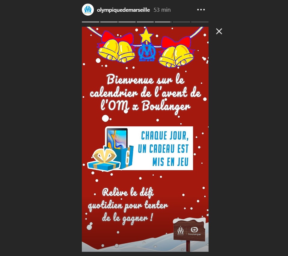 L’OM et Boulanger lancent un calendrier de l’Avent un peu spécial sur Instagram et Snapchat