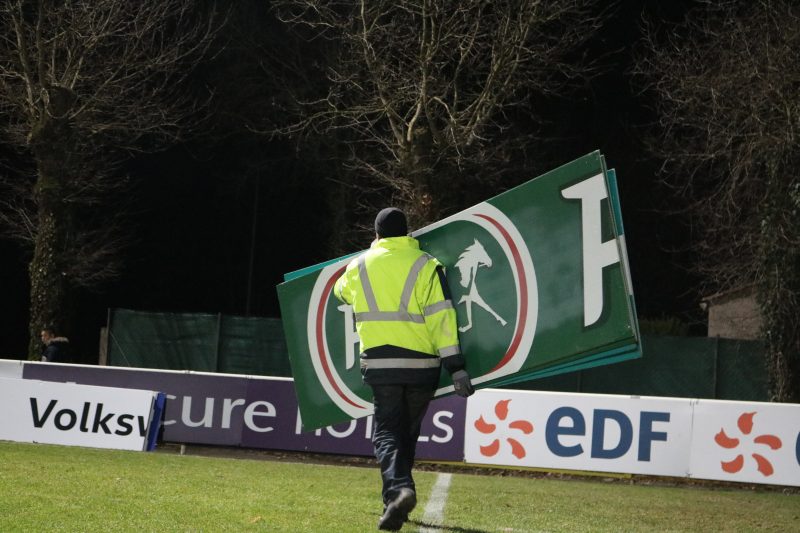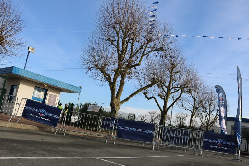A quelques heures du coup d’envoi, le stade de l’Idonnière se met aux couleurs de la Coupe de France de Football. Les panneaux publicitaires Nike, Volkswagen, PMU.fr, Carrefour, Mercure Hotels, EDF, Crédit Agricole ou encore Brioche Pasquier prennent position tout autour de la pelouse face aux caméras d’Eurosport, diffuseur du match.