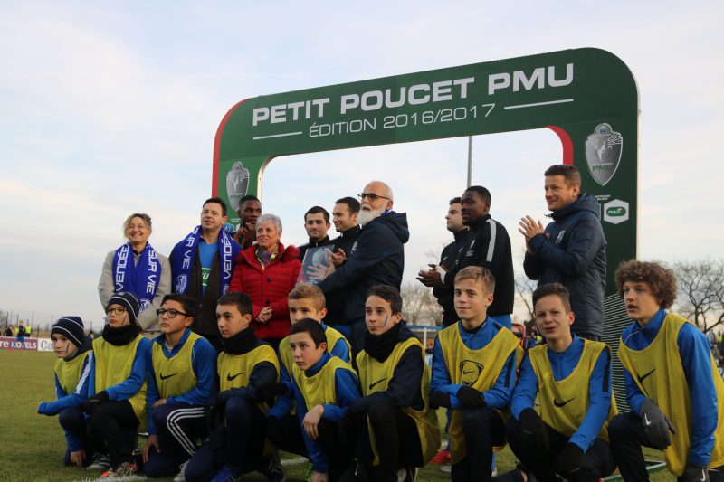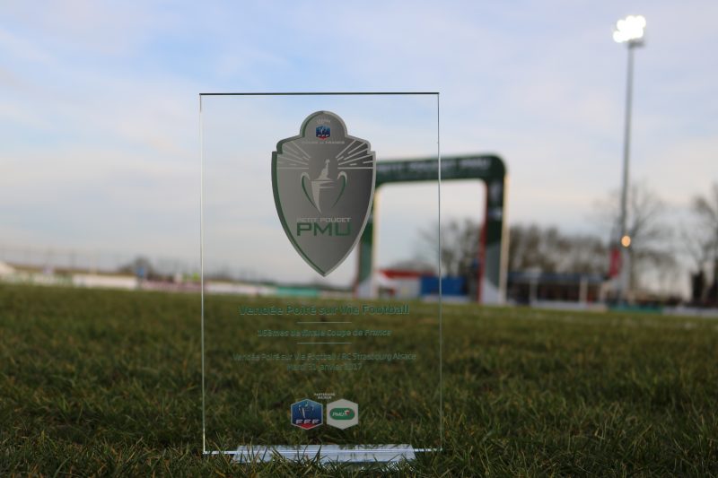 Pour revenir au match de Coupe de France entre le Petit Poucet du Poiré-sur-Vie et le RC Strasbourg, le PMU a bénéficié d’une mise en avant particulière pour « habiller » cette rencontre. Lors de l’échauffement, une bâche spéciale Petit Poucet PMU est venue recouvrir le rond central. En parallèle, une arche PMU a également été placée face à la tribune principale. Un décor qui a servi pour la remise du Trophée « Petit Poucet PMU » au Poiré-sur-Vie.