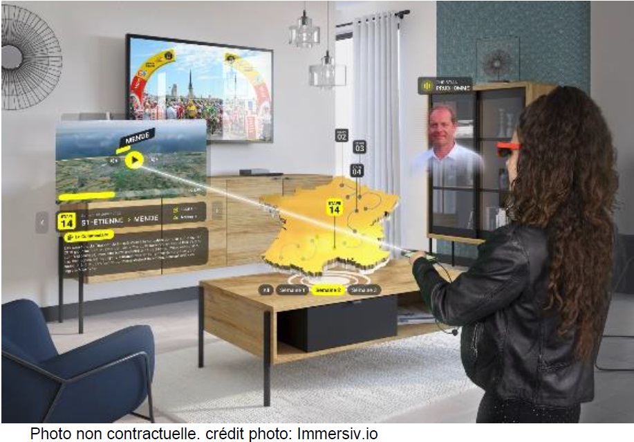 Chaussé de lunettes de réalité augmentée, le spectateur se verra accueilli par Christian Prudhomme, le Directeur du Tour, présent sous forme d’hologramme, et pourra visualiser en incrustation une carte de France en réalité augmentée avec les informations clés de chaque étape.