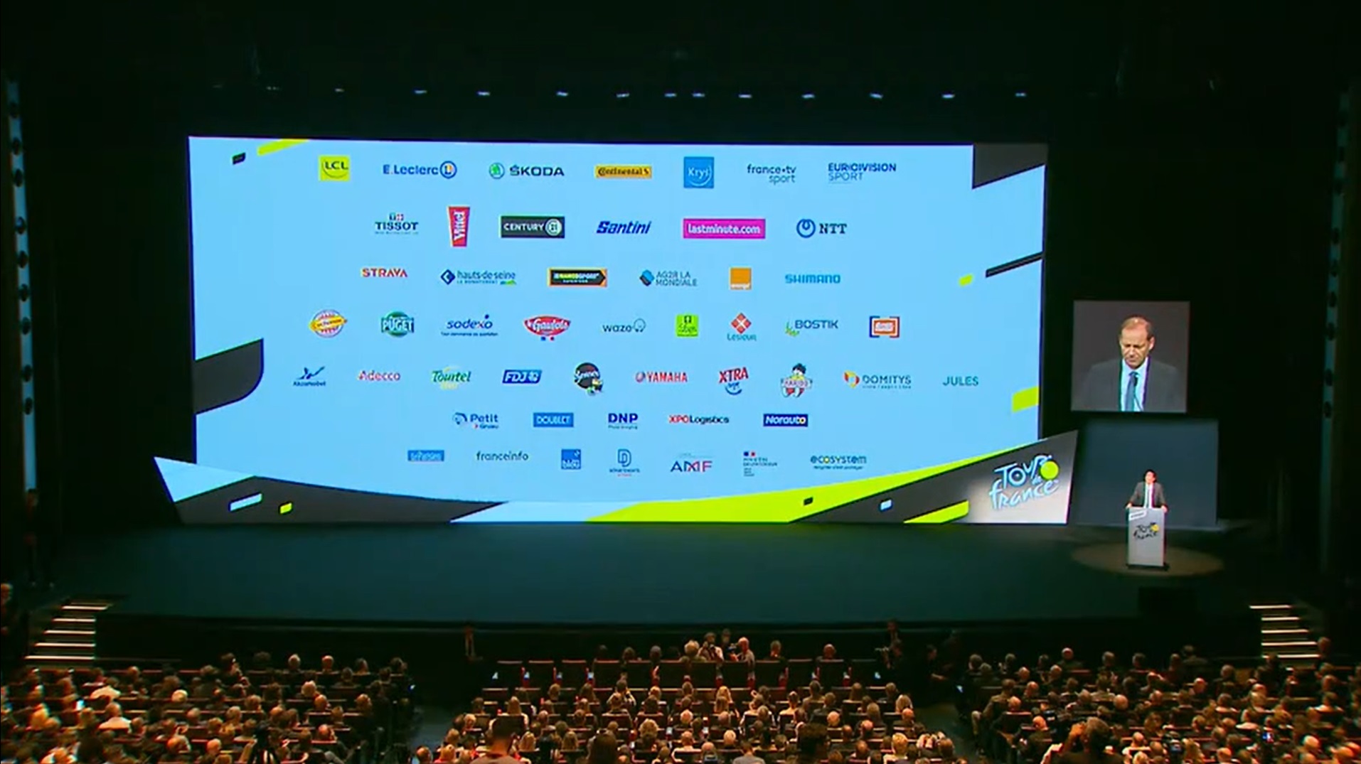 Evènement dans l’évènement, la présentation du parcours 2023 était diffusée sur de nombreux supports digitaux du Tour de France.