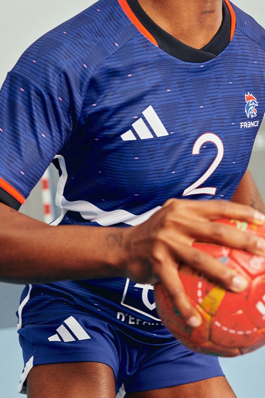 Pour la conception des tenues des équipes de France de handball et d’athlétisme, adidas a souhaité rendre hommage à la ville de Paris, « la ville des lumières », en affichant des détails évoquant des rayons lumineux. « Vingt lignes distinctes composent chacun des rayons en hommage aux vingt arrondissements de la ville. La dernière ligne rose au bas de chaque triangle représente le cœur de Paris. » détaille adidas.
