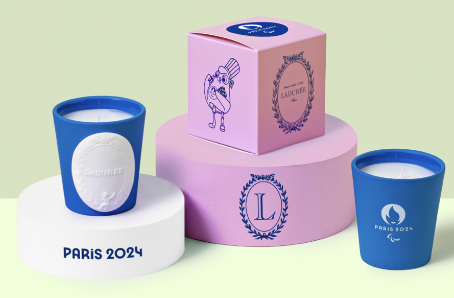 Enfin, histoire d’embaumer la pièce de « saveur gourmande », Ladurée vend également une bougie bleu roi à 19€ dans un étui où la mascotte paralympique enfile une toque de pâtissière.