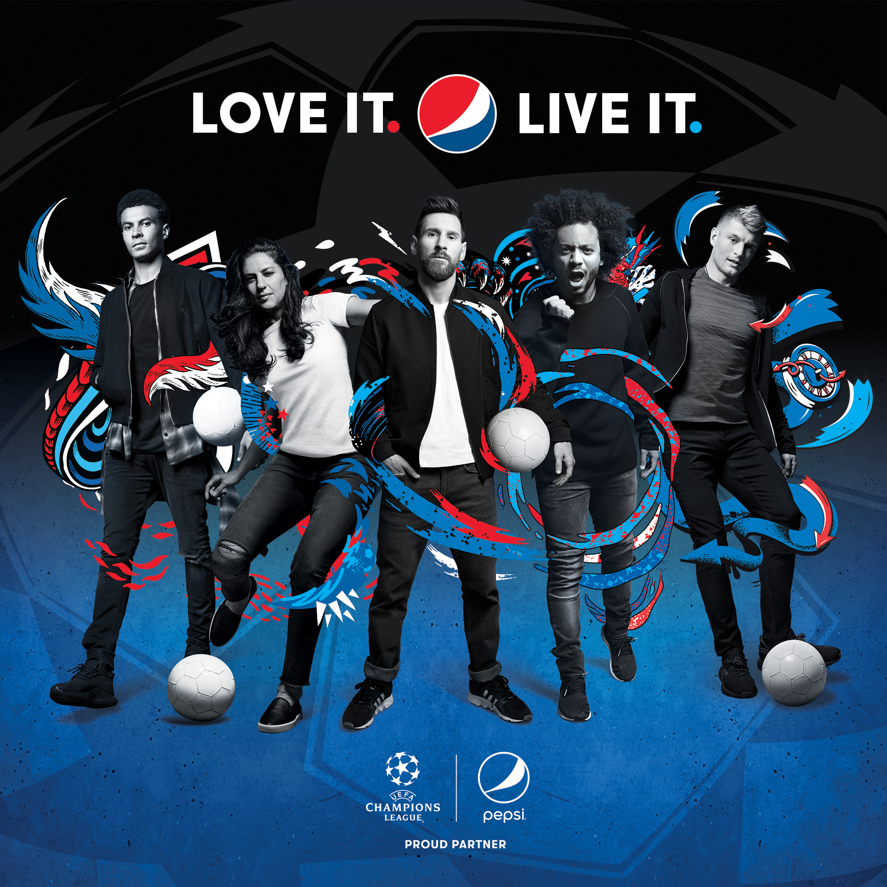 Dans le spot ci-dessous, la marque de soda, partenaire de l’UEFA Champions League jusqu’au moins 2021, met en scène Lionel Messi, Marcelo, Toni Kroos, Dele Alli ou encore la joueuse Carli Lloyd. Survitaminée et énergique, la vidéo ne laisse pas de place au doute : la campagne est une bouffée d’adrénaline pour le consommateur.