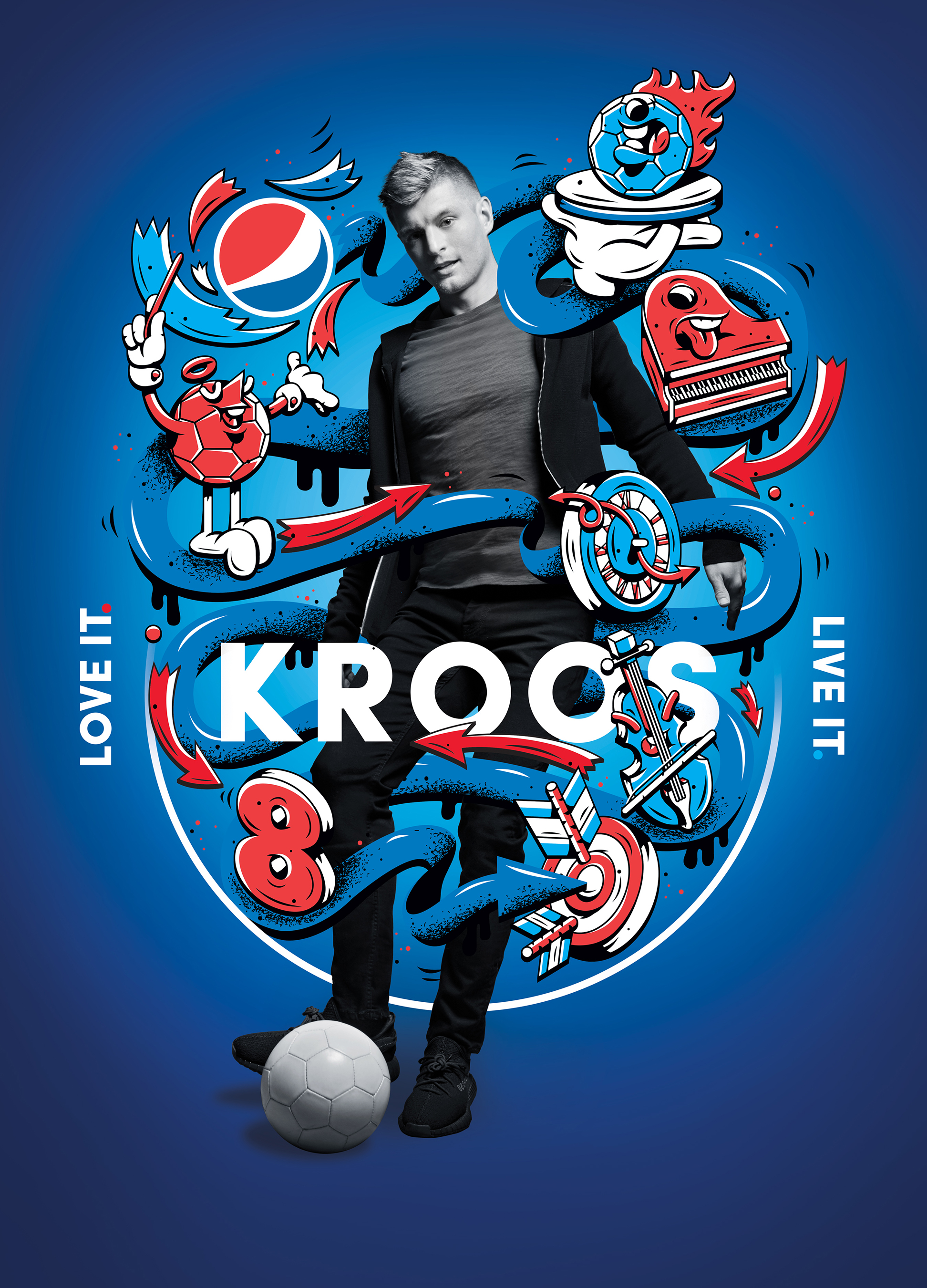 En plus de ce spot, des visuels personnalisés pour chaque égérie ont été créés par des artistes venant des pays d’origine de chacun (Argentine, Brésil, Allemange, Angleterre, États-Unis). Ces dessinateurs ont donné leur propre interprétation graphique de la personnalité et de l’histoire de chaque joueur. Après sa campagne de 2014, Pepsi continue d’associer de façon explosive l’art, la passion et le football.