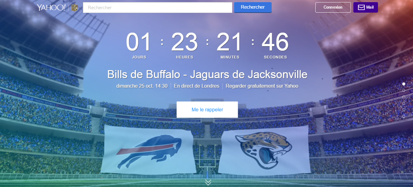 Ce dimanche à 14h30 (heure française), Yahoo! diffusera à travers le monde entier le match NFL entre les Buffalo Bills et les Jacksonville Jaguars organisé à Londres au Wembley Stadium. Un évènement accessible sur nflstream.yahoo.com