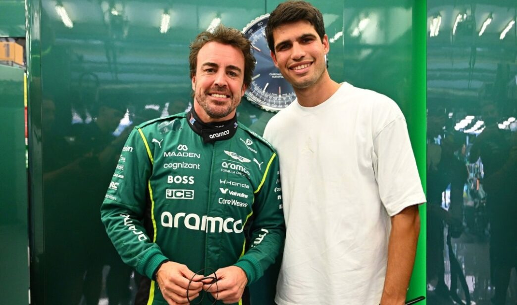 De passage sur le circuit de Sakhir, à Bahreïn, Carlos Alcaraz a rendu visite à son compatriote Fernando Alonso lors des essais de présaison de Aston Martin F1 Team. L’écurie britannique a partagé plusieurs photos de la rencontre sur ses réseaux sociaux, accompagnées du message « Serving Aura ».