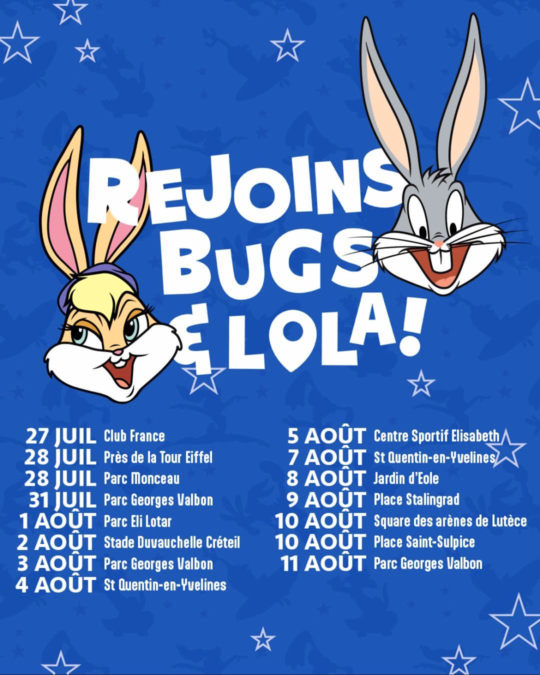 Depuis le début des Jeux, Bugs Bunny et Lola Bunny sont à Paris, notamment au Club France où Eurosport France a installé son plateau TV de l’émission quotidienne « Mon Paris Olympique » présentée par la journaliste Géraldine Weber et diffusée en seconde partie de soirée.
