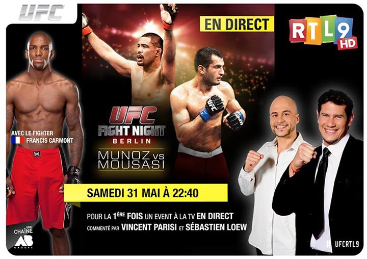 « Pour RTL9, diffuseur historique et exclusif de l’UFC en France, la venue de l’UFC en Europe est toujours un événement à part entière, une belle fête sportive, à laquelle la chaîne est ravie de pouvoir aujourd’hui s’associer. La présence de l’athlète français Francis Carmont à l’affiche nous a fait comme l’effet d’un détonateur. Lorsque nous l’avons su, il nous est apparu primordial de pouvoir proposer ce combat en direct à tous les fans de l’UFC en France qui nous suivent et nous soutiennent depuis plusieurs années. Nous espérons bien sûr que ce Fight Night Berlin sera le premier d’une longue série d’événements retransmis en direct sur RTL9 ! » a déclaré Gregg Bywalski, Responsable Marketing, Communication et Business Development RTL9.