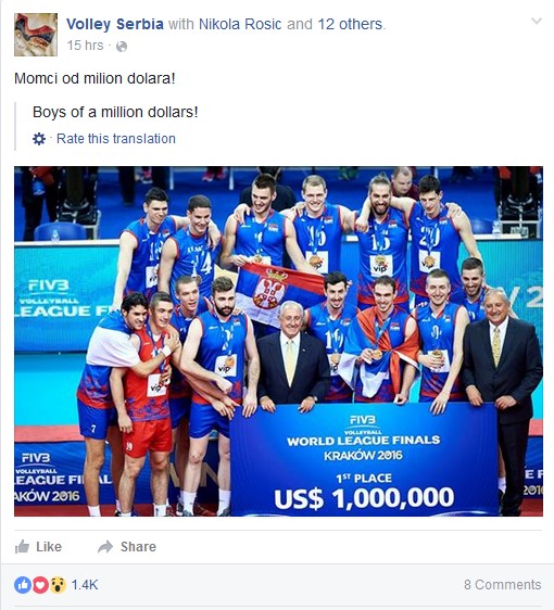 Pour rappel, l’Equipe de France de Volley Ball avait remporté la Ligue Mondiale en 2015 à Rio et le chèque de 1 million de dollars qui accompagnait cette victoire. Cette année c’est la Serbie qui a remporté la compétition et le chèque.